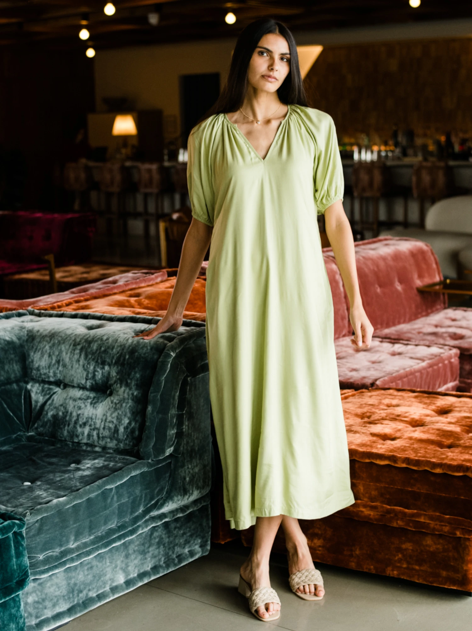 Effortless, relaxed, and out the door in 5 minutes, this maxi dress does it all. A casual warm-weather staple boasting an elevated open neckline, raglan puff sleeves, and convenient side seam pockets. Keeping you cool and comfortable, the Amari Maxi Dress features a body-grazing silhouette and is made from a lightweight, breathable drapey viscose. From work to brunch, school drop-off to happy hour, there’s no occasion that the Amari can’t handle.