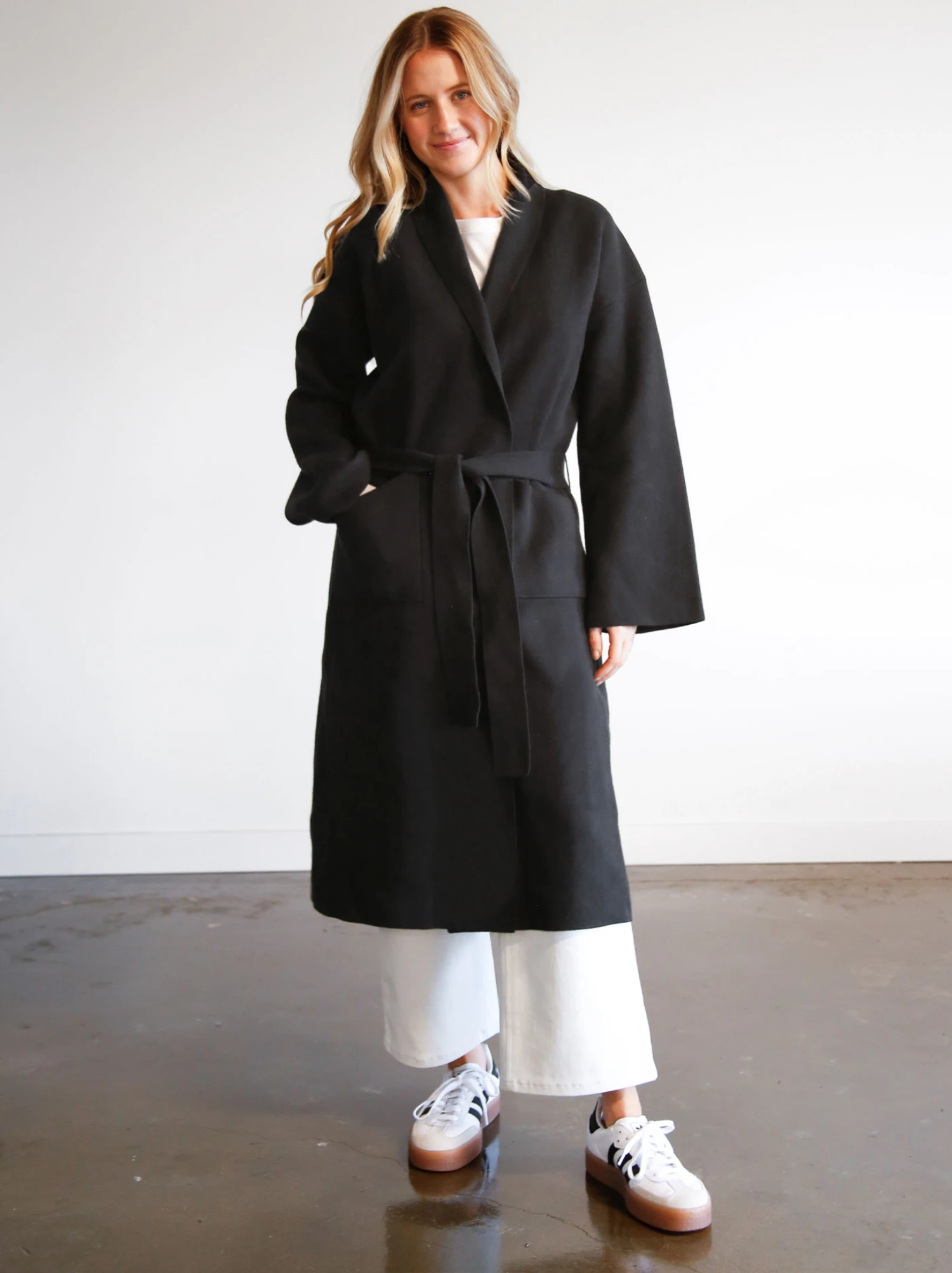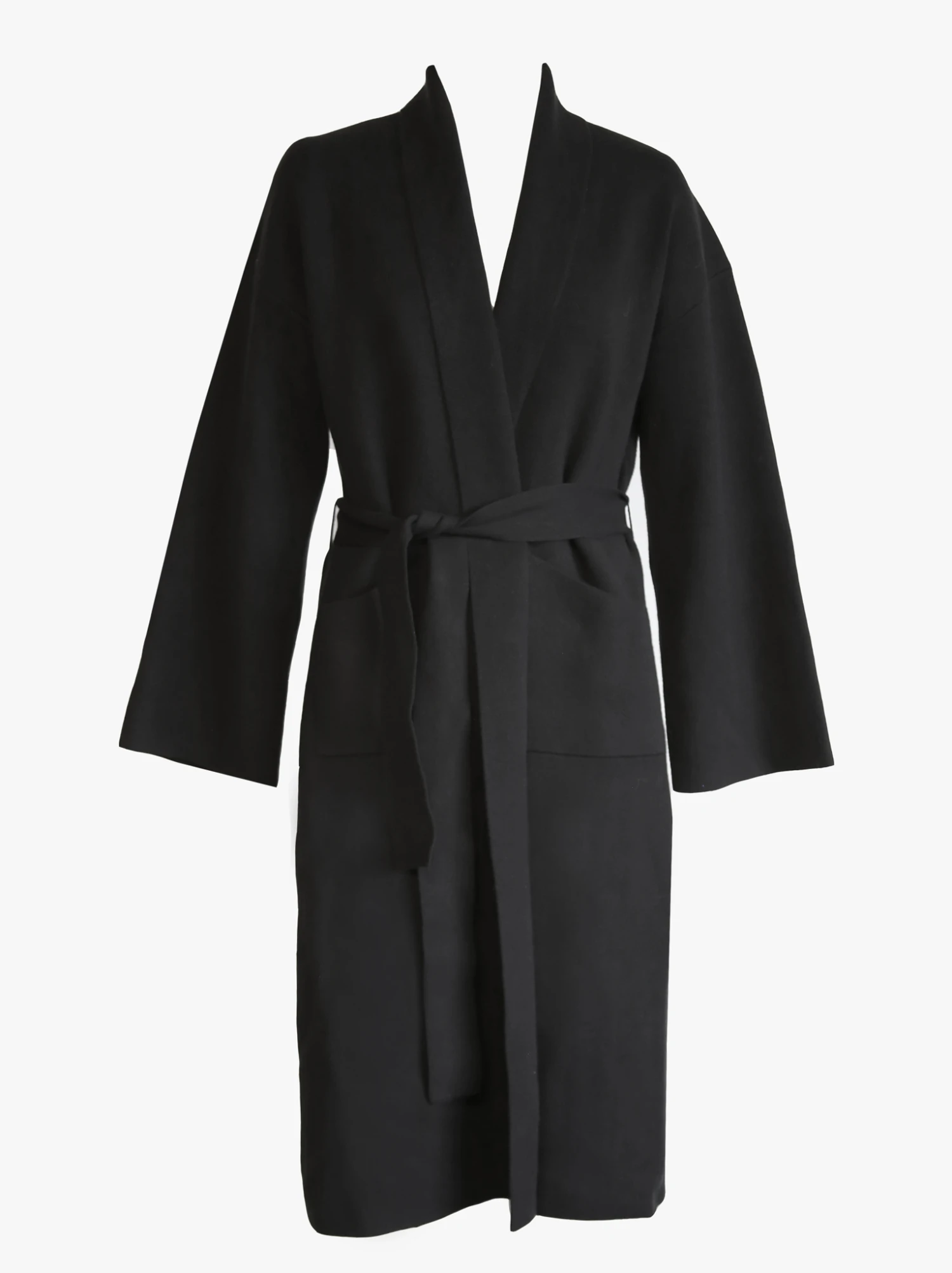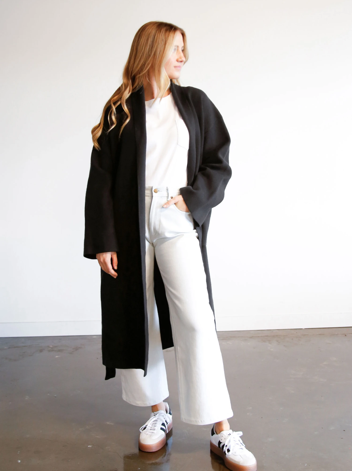 Meet your new favorite layering piece. Inspired by slightly oversized outerwear, this double knit sweater coat is perfect for cozying up inside or layering on for cooler temps outside. Featuring a polished shawl collar, a removable belt, and deep patch pockets, this full-length cardigan will instantly elevate any look.