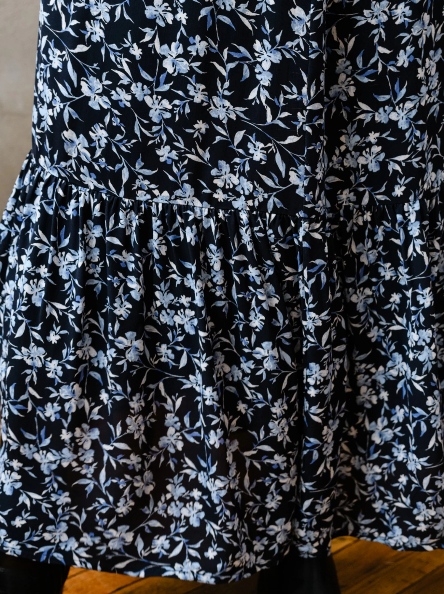 Featuring a vintage floral pattern, this tiered maxi skirt is the perfect addition to your wardrobe. Made of a soft double georgette fabric for a flowy silhouette and designed with a ruffle hem for added movement, this versatile floral skirt features an elastic waistband for all-day comfort and easy pull-on styling.