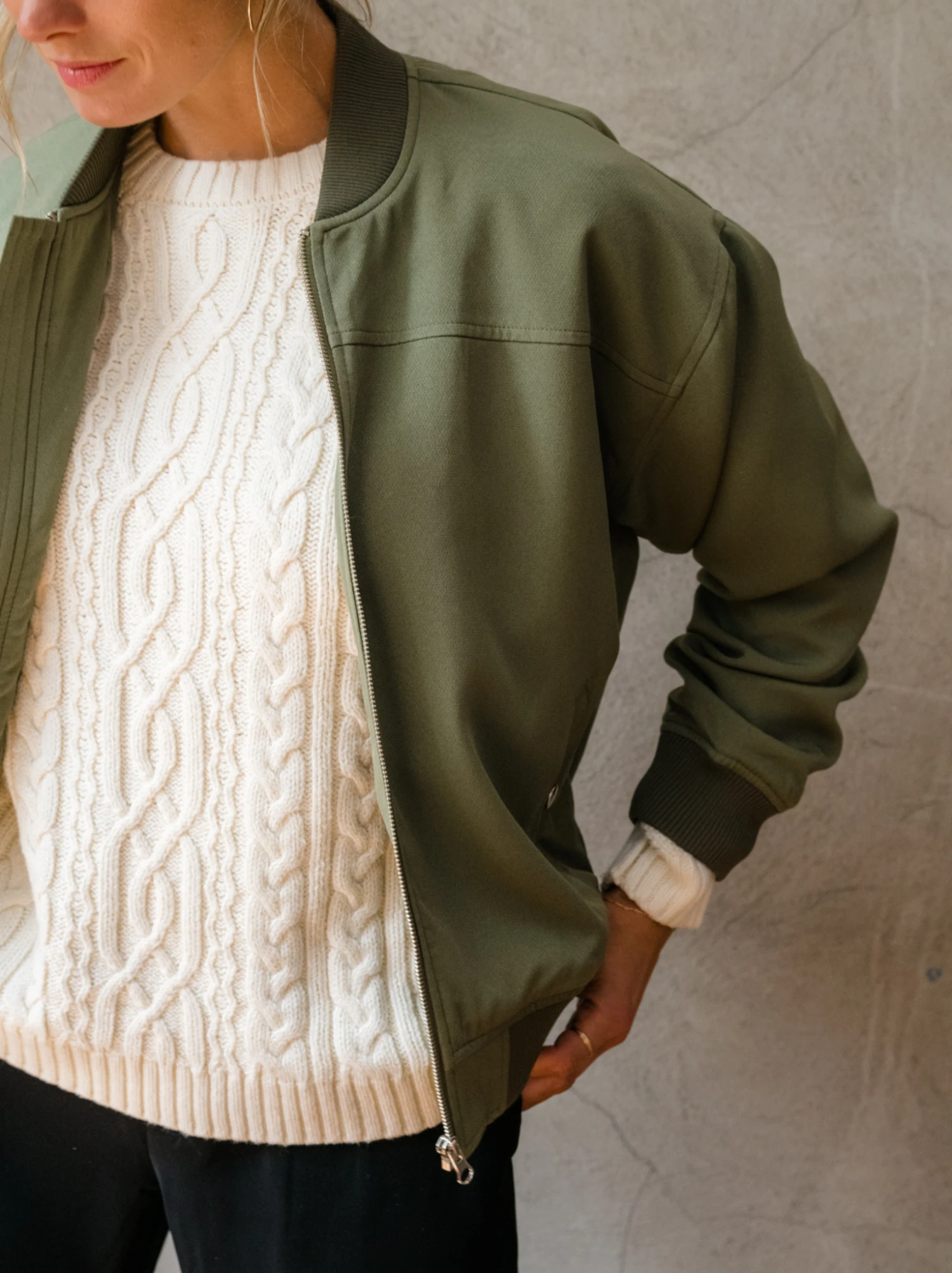 A modern take on a classic silhouette, this timeless oversized bomber jacket makes every outfit feel effortless. Easy to wear and easier to style, this chic bomber is the perfect transitional piece for those cooler days. Featuring a drop shoulder and relaxed sleeve with welt pockets at waist, the Chandler brings function, style, and comfort to your everyday wardrobe.Â