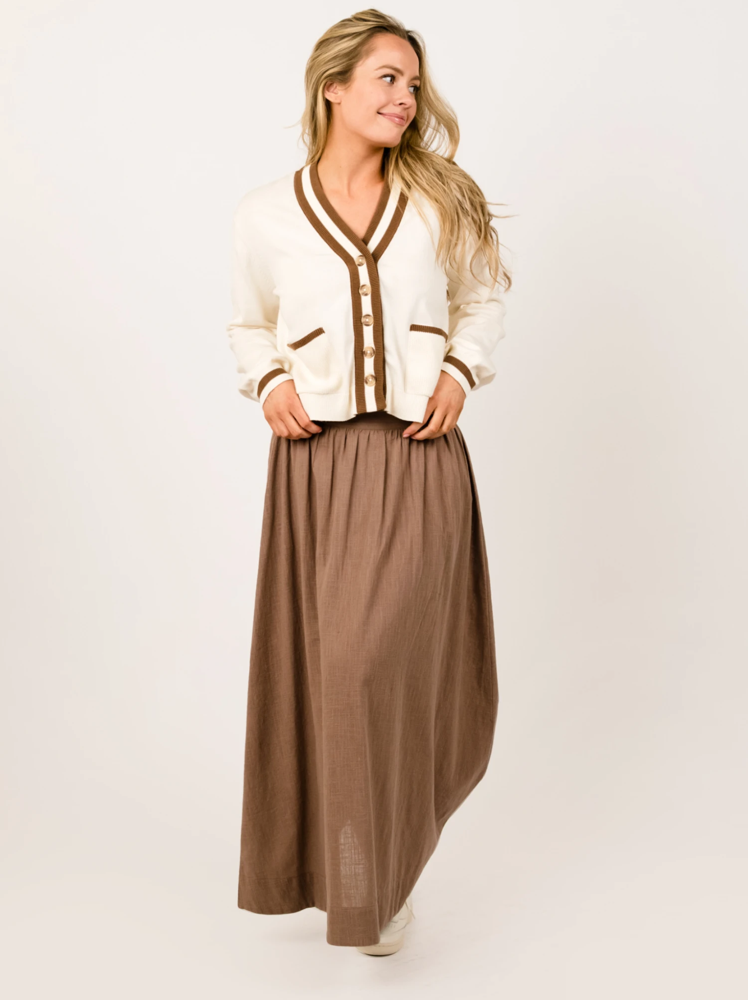 Our new favorite layer that’s as comfortable as it is elevated, the Dawn Varsity Cardigan instantly polishes anything you pair it with. Contrast trim details and patch pockets make this collegiate-inspired cardigan perfectly chic for work or weekend ensembles. Designed with our GOTS certified organic cotton yarn, the Global Organic Textile Standard ensures that the highest quality organic fabric is used with the most responsible manufacturing.