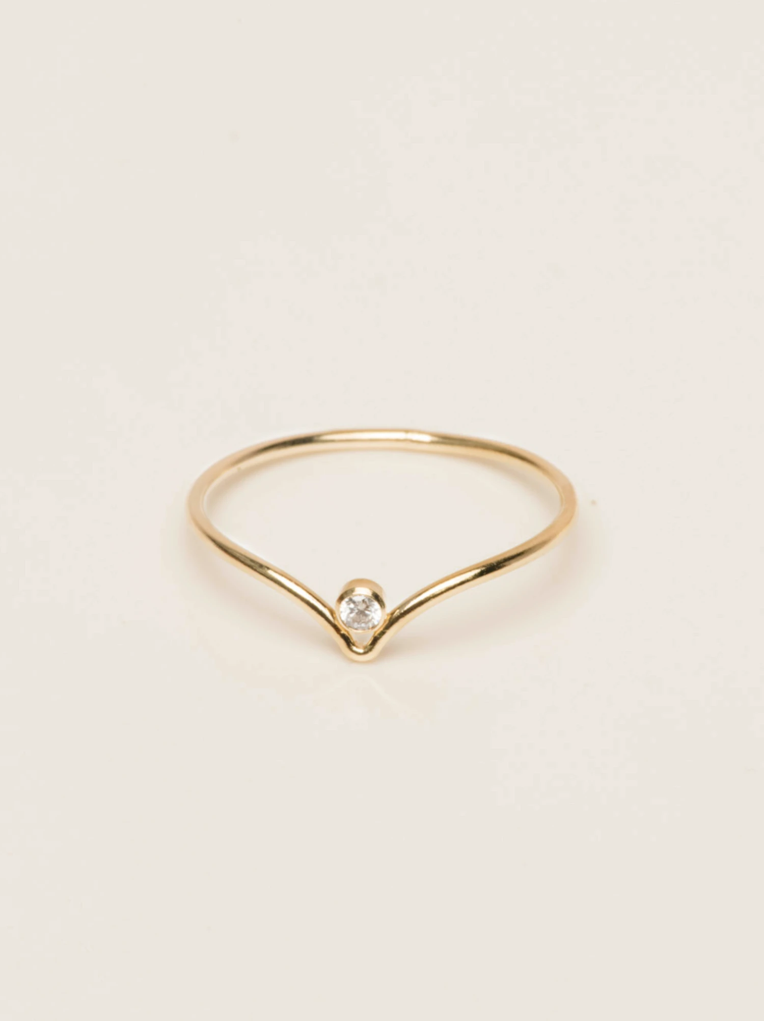 Part stacker, part statement, all charm. With a wishbone inspired shape and bezel-setting gem at the center, this lightweight and eye-catching design is the perfect every day accessory. Designed as an elevated addition to your stack yet striking enough to wear on it’s own, keep this chevron-shaped gemstone ring in close range for an extra dose of fortune.