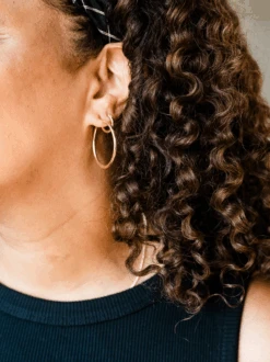 A lesson in duality. These earrings boast a captivating aesthetic with their mixed metal design and unique shape. The sleek combination of both gold and silver along with the chunky circular drop silhouette, creates a dynamic appeal that effortlessly elevates any look.