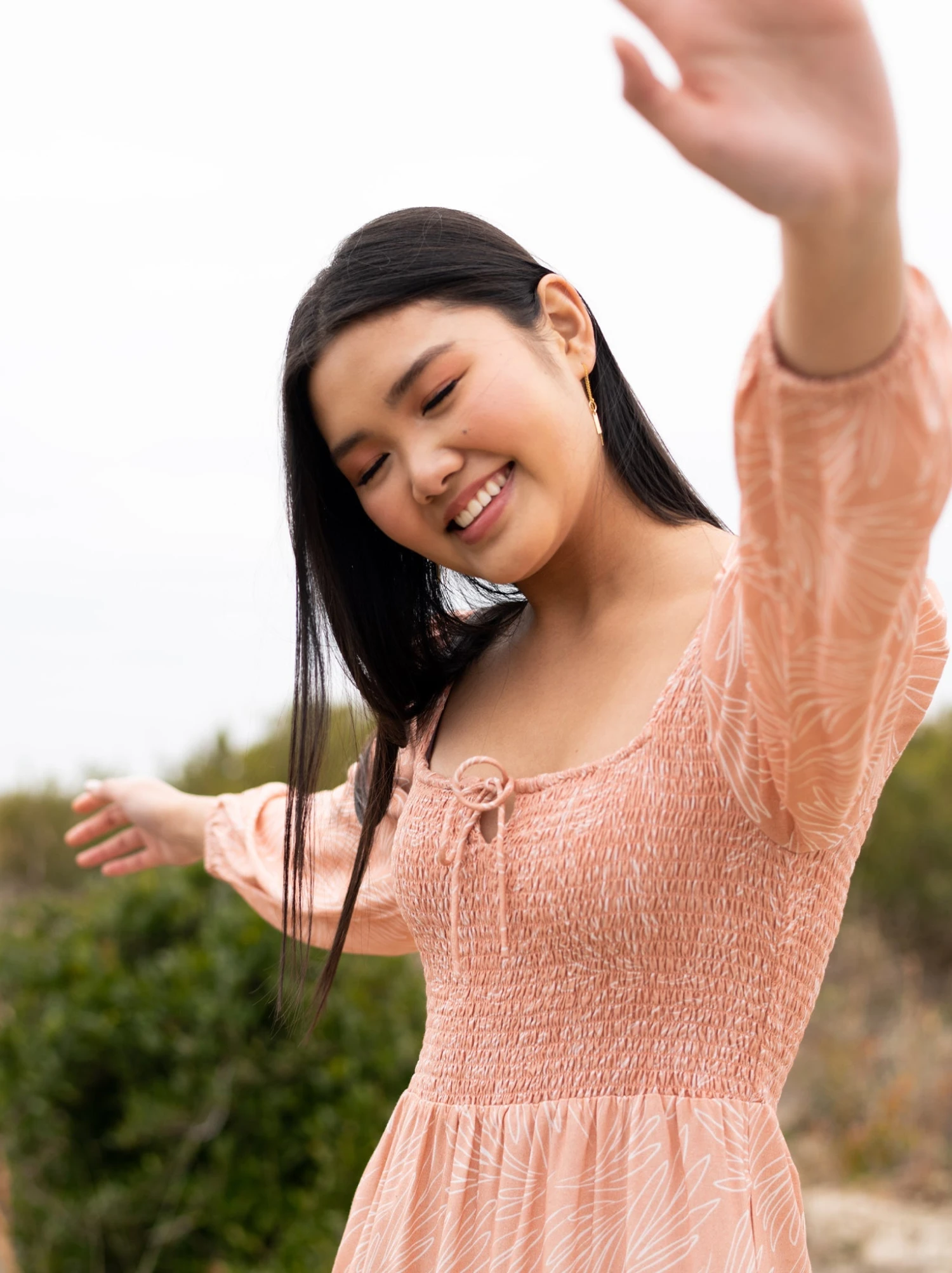 The Joyce Smocked Midi Dress features a square neckline and an adjustable top for any size bust. We know puff sleeves are fun and flirty, but can fall off your shoulders. That’s why we added hooks for your bra straps. With an easy fit and convenient side pockets, this dress is a great addition for your spring and summer wardrobes.
