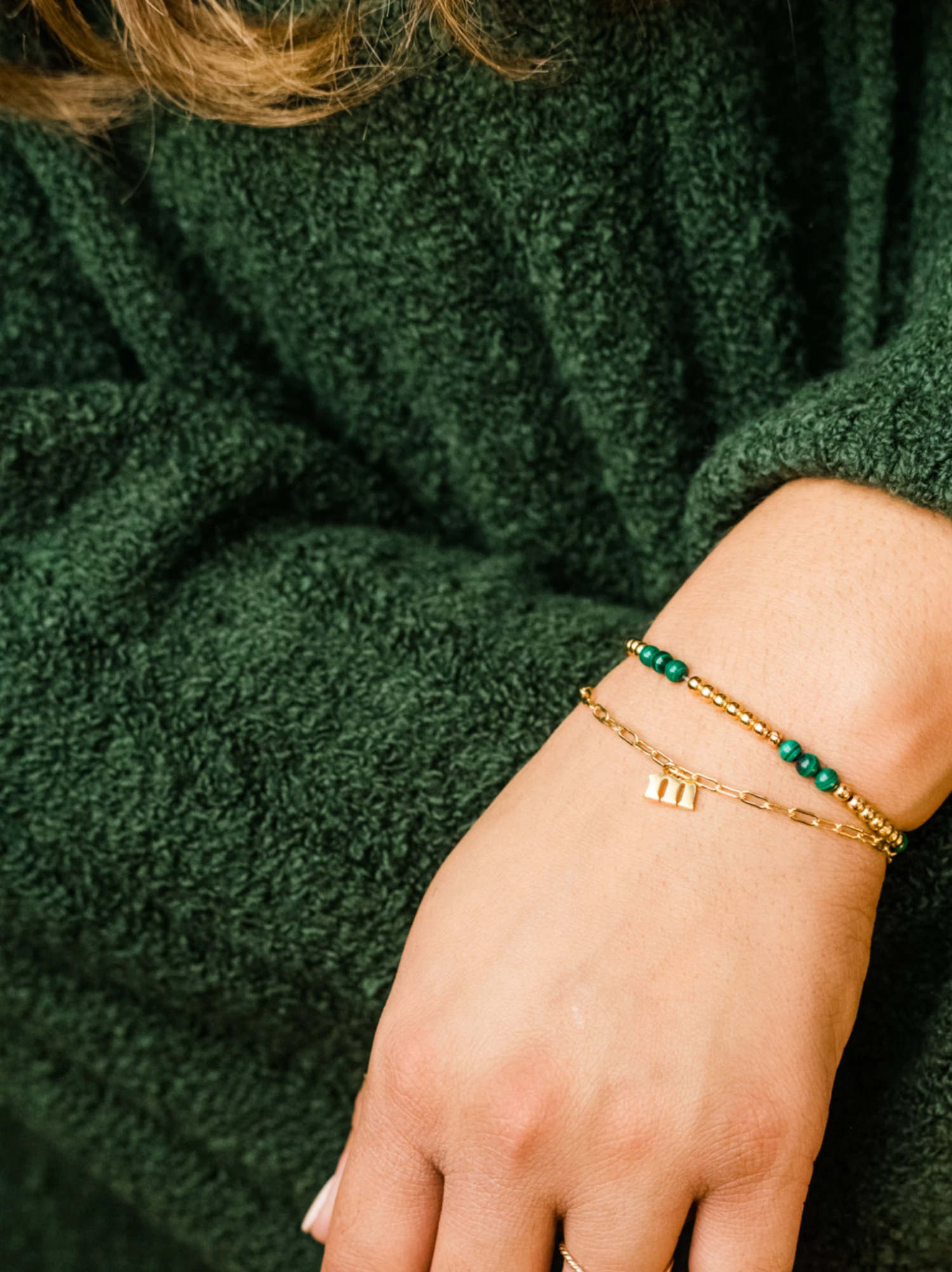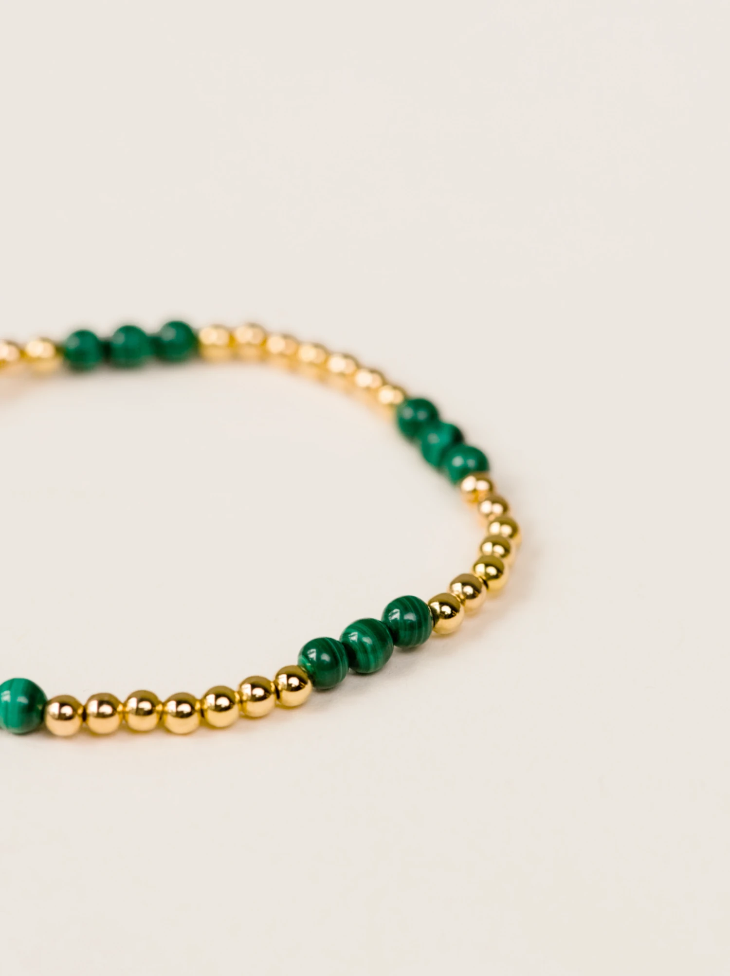 The perfect balance between simple and bold, the Malachite Beaded Bracelet is the finishing touch to all your holiday looks. With an elastic string and slip on styling, this bracelet is stretchy, comfortable, and durable. Easy to wear and layer, pair it with other styles in the Malachite collection for an elevated and cohesive look.
