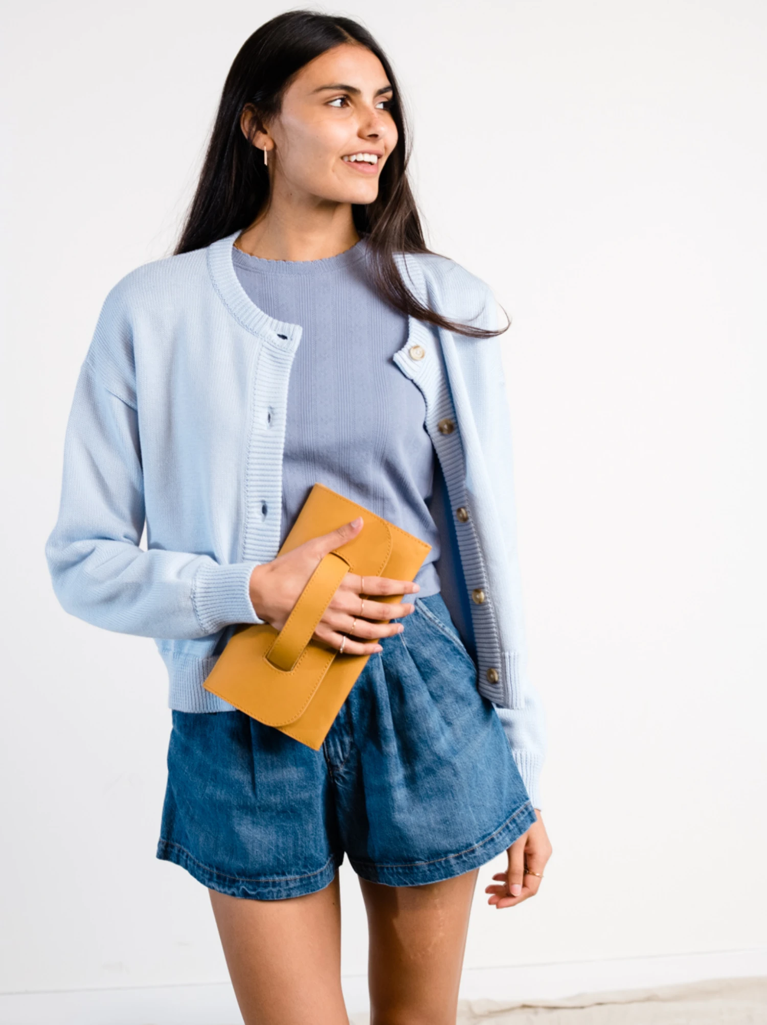 The Mare Handle Clutch is a one-of-a-kind leather clutch designed for effortless style and ease of use. Featuring a unique handle that allows you to slide your hand through for a secure and comfortable grip, this clutch is both functional and fashionable. Perfect for evening outings or special events the Mare Handle Clutch’s minimalist design and high-quality leather make it a timeless accessory that enhances any outfit.