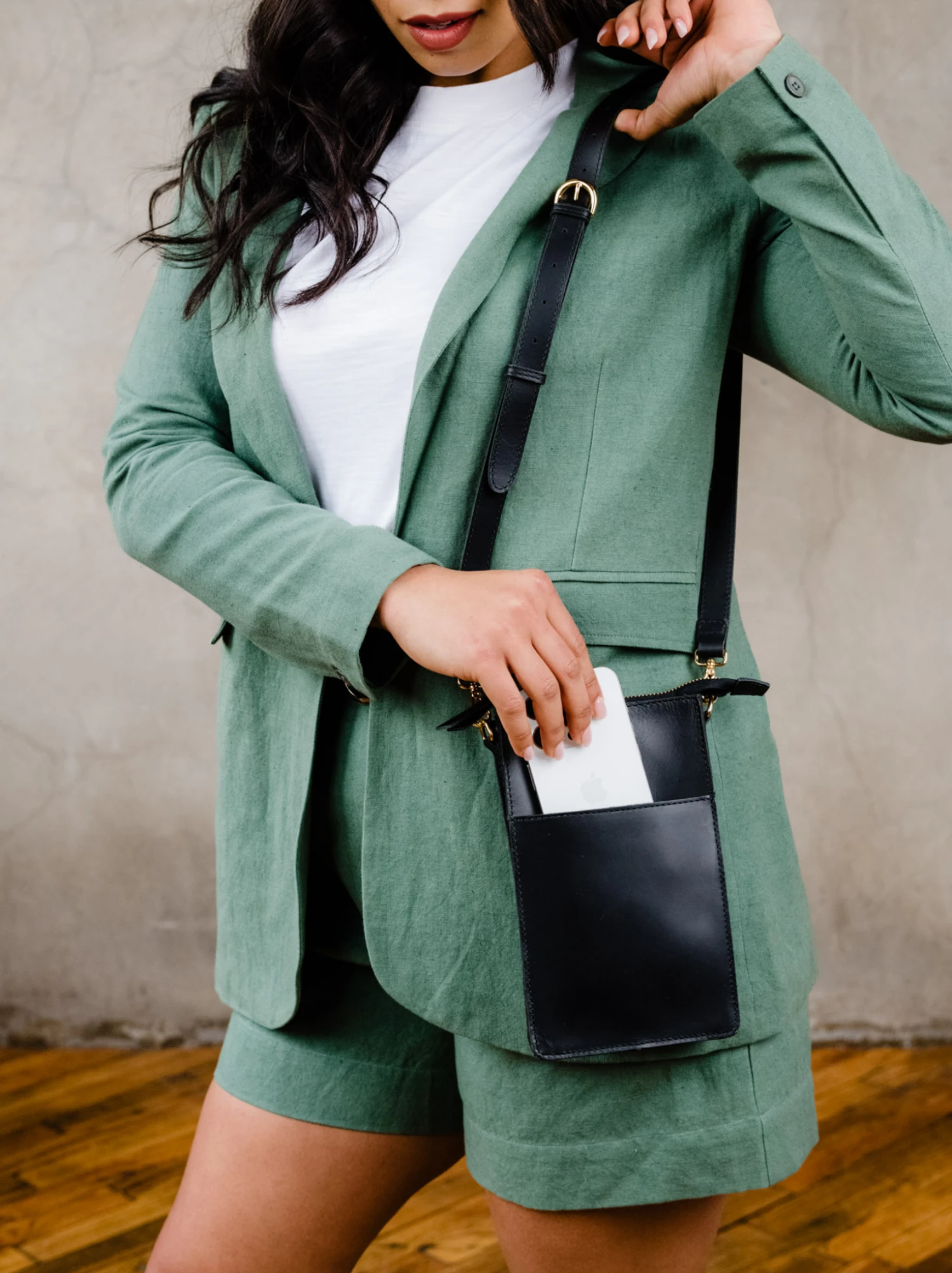 - Adjustable crossbody strap: