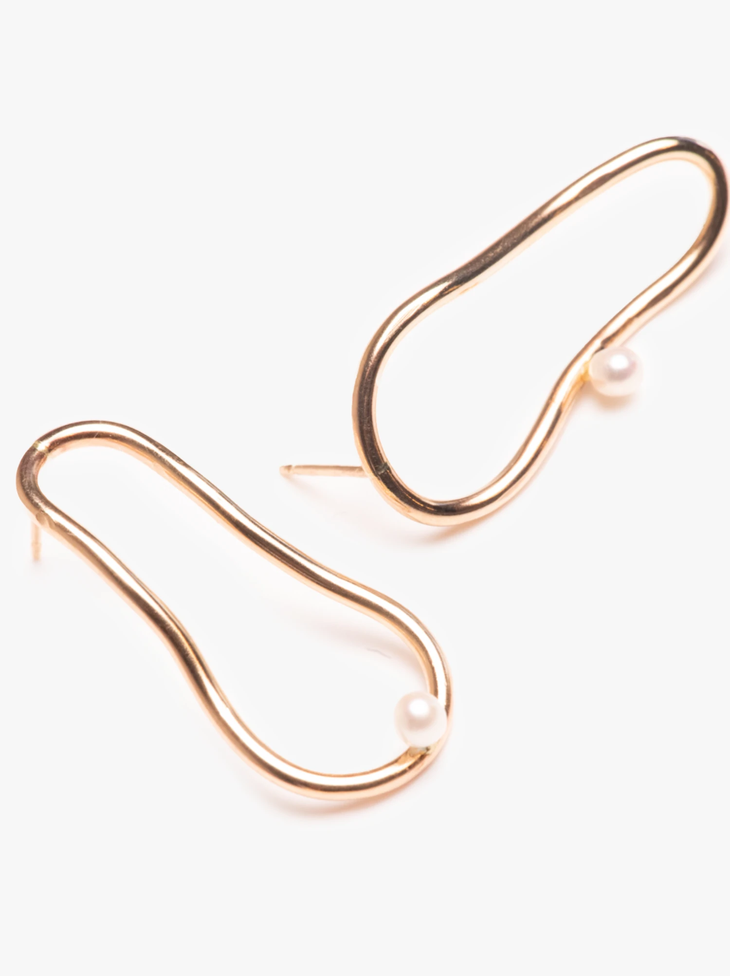 These organically shaped oval freshwater pearl earrings are a fresh take on classic elegance. Each earring showcases a uniquely positioned freshwater pearl, adding a distinctive touch to these timeless pieces. Crafted with meticulous attention to detail, these earrings offer a blend of modern sophistication and timeless elegance.