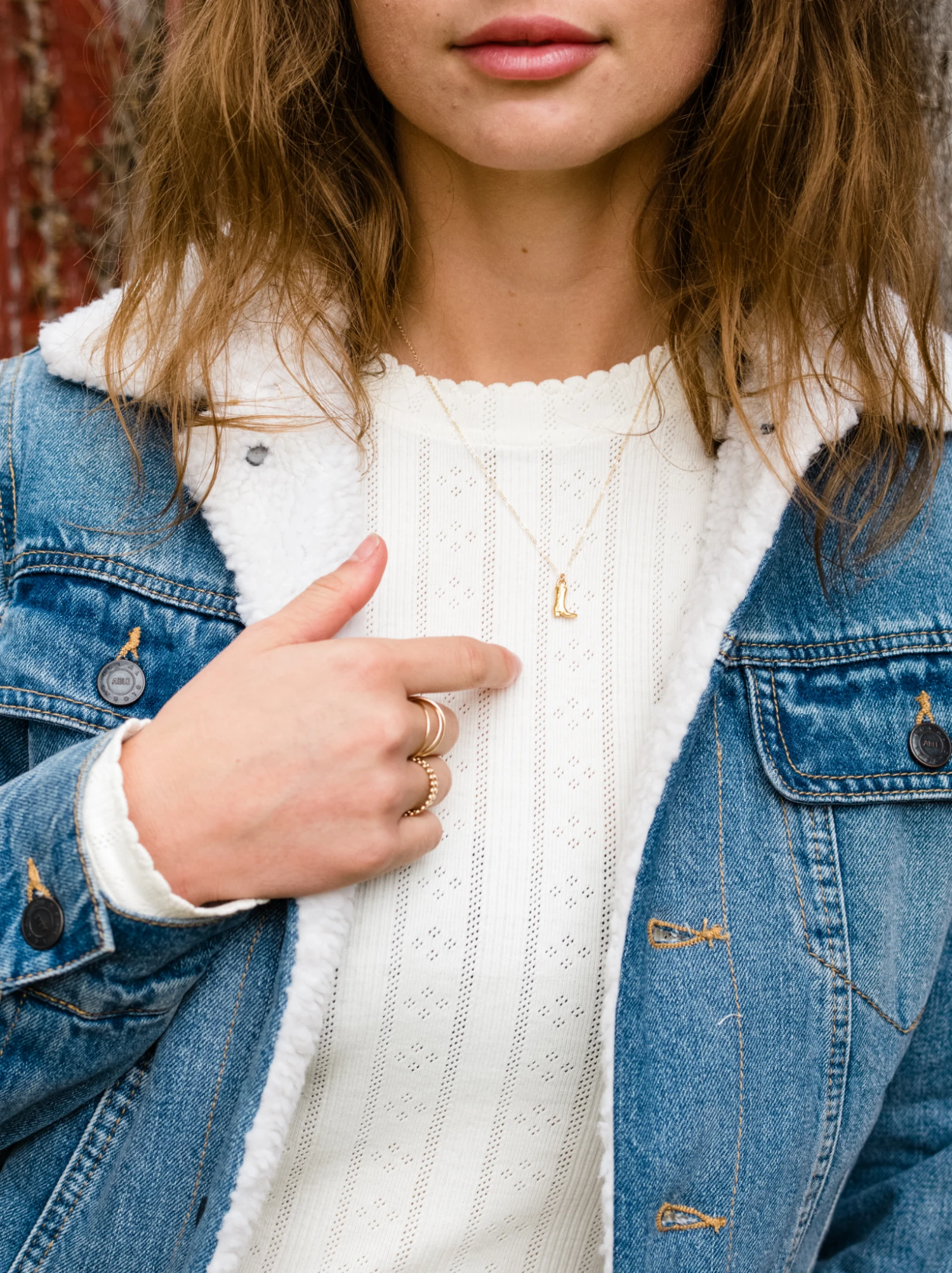 Adding a touch of southern charm to any look, this gold cowboy boot pendant necklace is bringing us back to our roots. Crafted with a 14k gold-filled necklace and three-dimensional vintage leather boot, this lucky charm inspires a get-up-and-go attitude. Wear this piece on its own or layer for a unique and elevated stack. Embodying the free-spirit attitude of the open range, this necklace pairs well with our Cowboy Boot Stud Earrings.Â