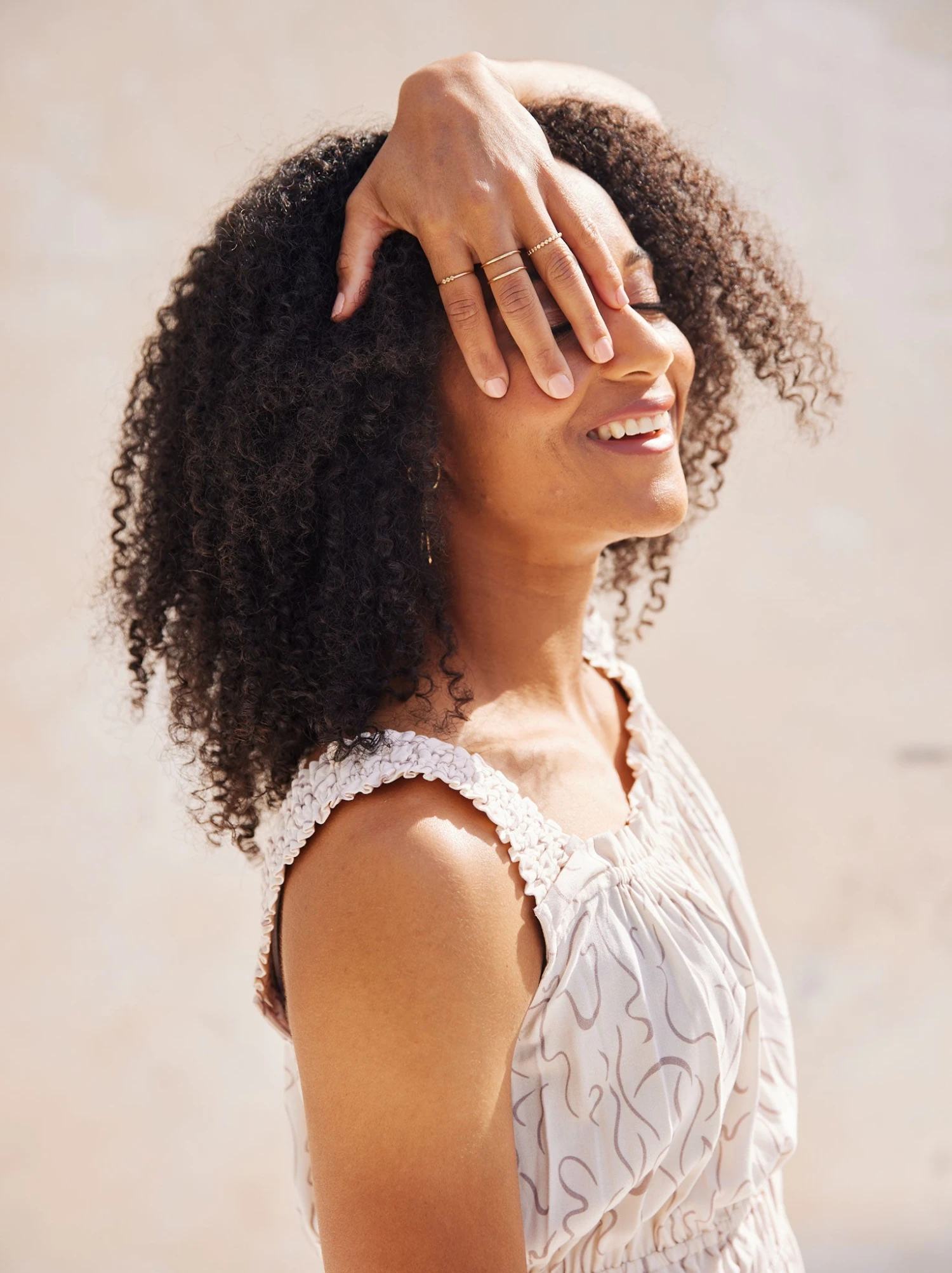 Easy and elevated thanks to its three beaded texture. Mix and match to create the perfect stack with our Selma Five Dot Ring, or any of your other ABLE favorites. Handmade in Nashville, helping women transform their communities.
