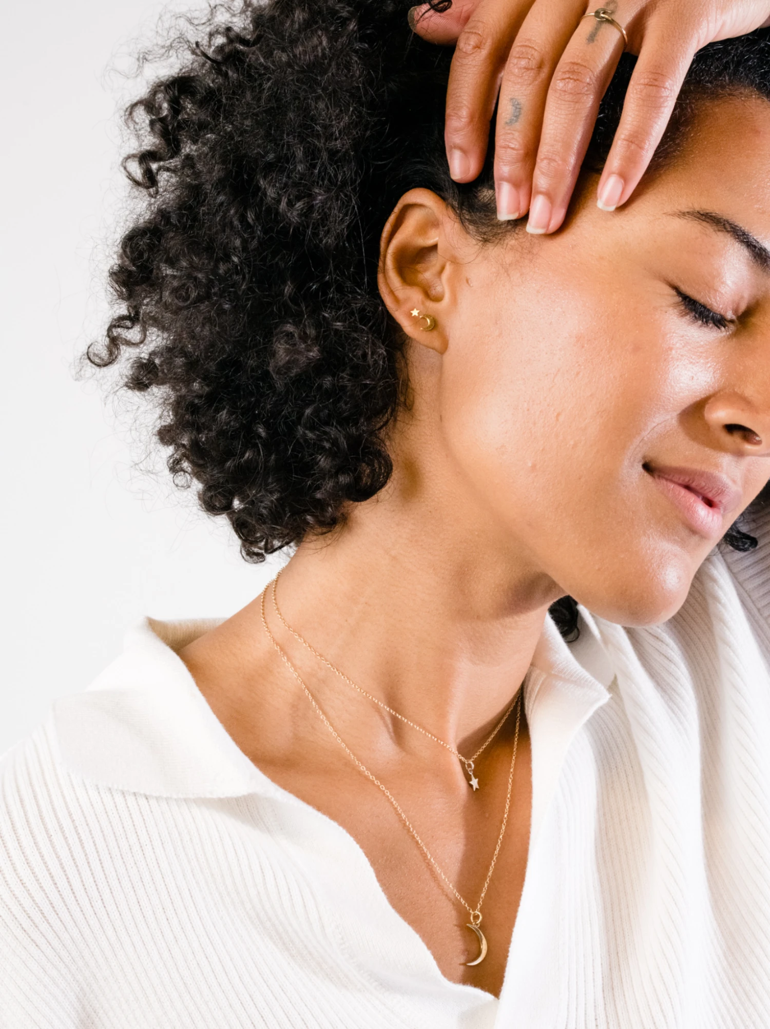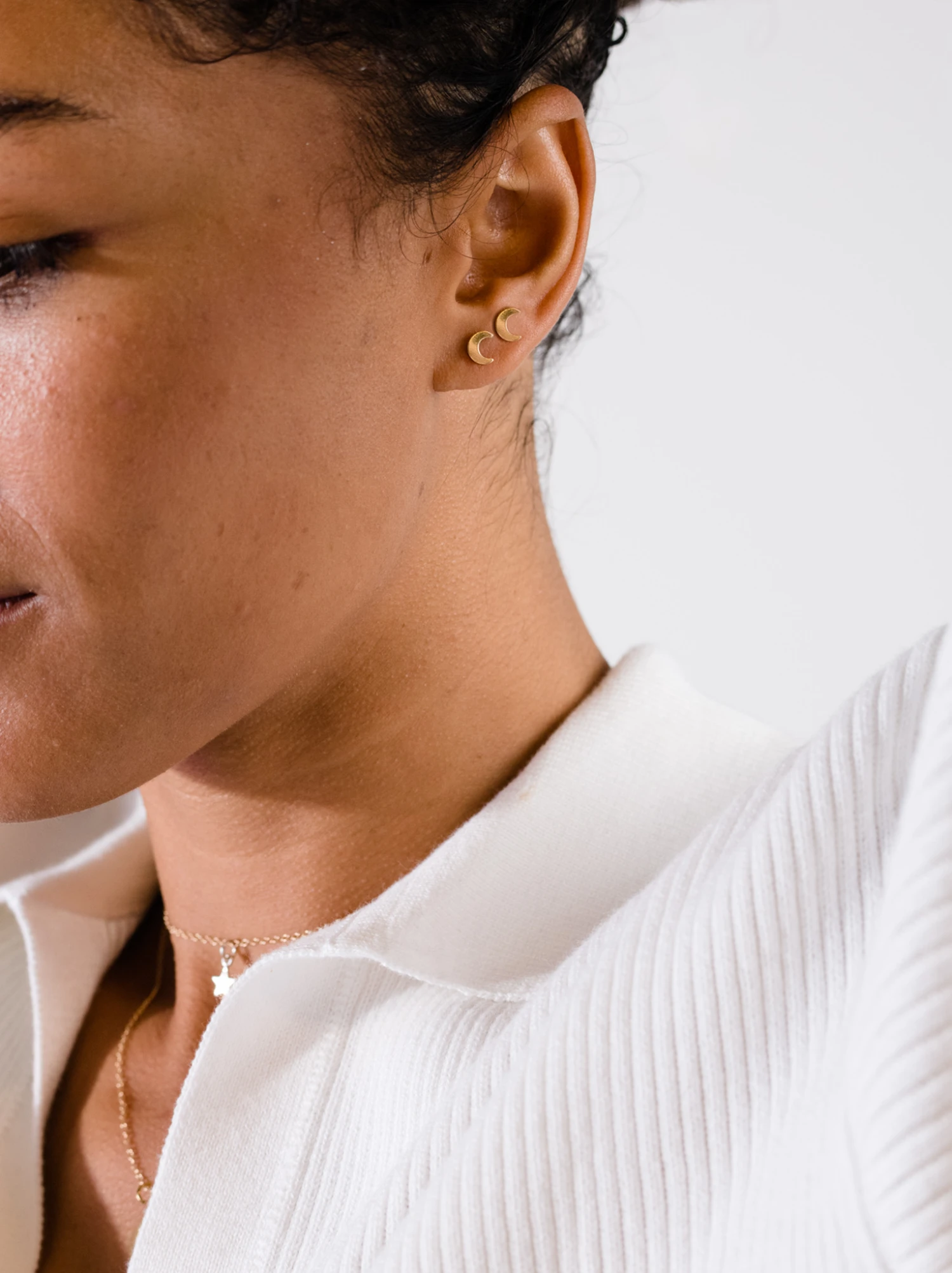 These mixed stud earrings bring celestial charm to your everyday look. Perfect for creating a stylish second or third-hole arrangement, they effortlessly blend timeless elegance with modern flair. The delicate design allows you to mix and match stars and moons, or pair them together for a custom celestial arrangement. Crafted from high-quality materials, these studs are a magical addition to any ear stack and make a thoughtful gift for someone special. Their enduring design and enchanting appeal make them a treasured part of any jewelry collection.