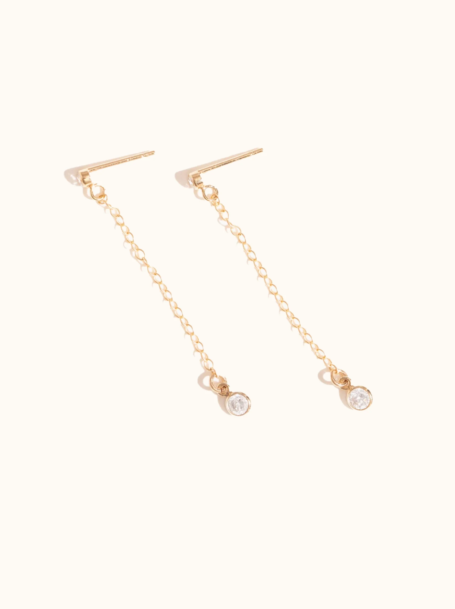 The Stella Drop Earring brings understated elegance to your holiday style with its gold-filled chain and single gemstone. Make a statement and pair with the Stella Drop Necklace.