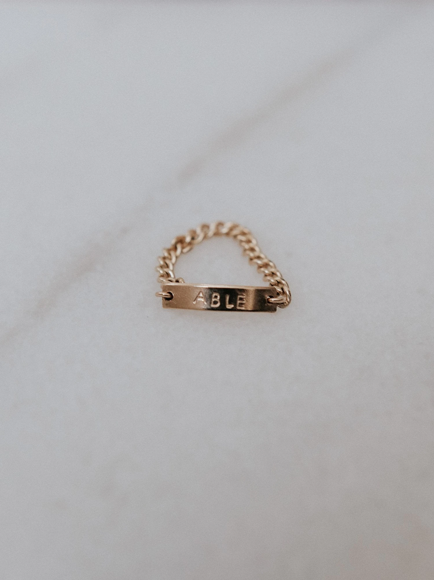 This rich, textured chain meets personalization, creating the perfect accent to wear alongside your other ABLE rings or alone for a unique statement.